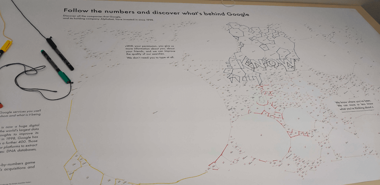 A children’s connect-the-dot game in which each dot is a subsidiary of Alphabet, Google’s parent company. A great way to visually demonstrate the sheer scale technology corporations are reaching.